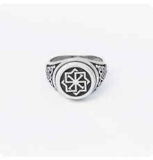 Кольцо Оберег Звезда Руси (Квадрат Сварога) из серебра